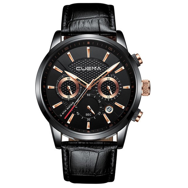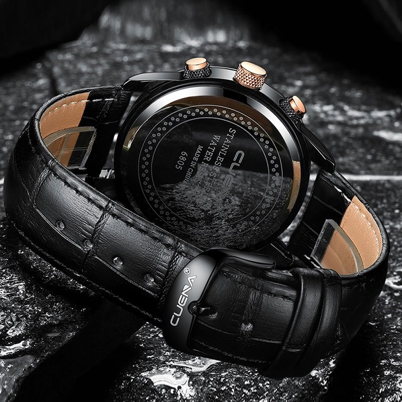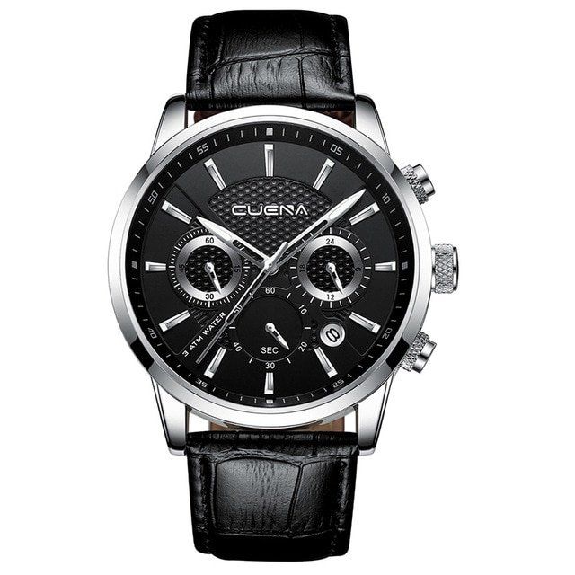 CUENA Men’s Watches Stopwatch Date Luminous Hands Genuine Leather 30M Waterproof Clock Man Quartz Watches Men Fashion Watch