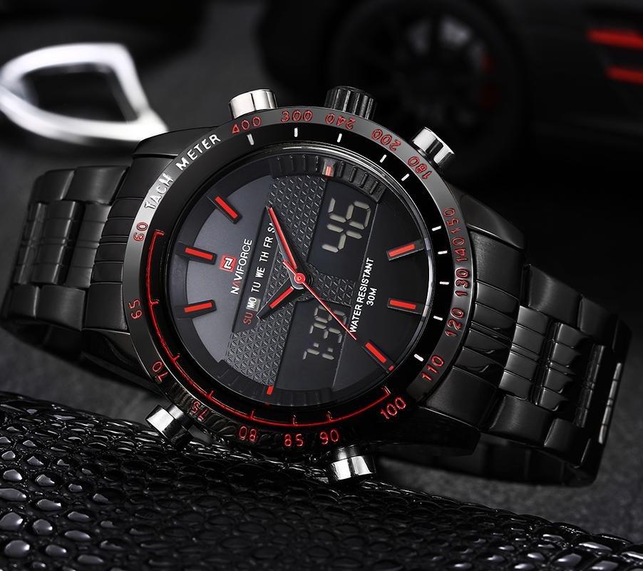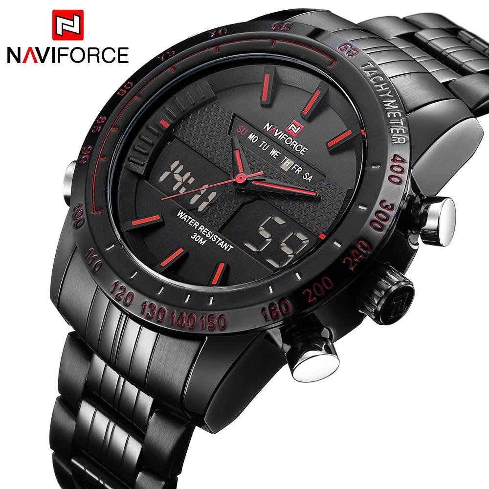 NAVIFORCE Stainless Steel Quartz Watch Men Digital LED Sports Wristwatch