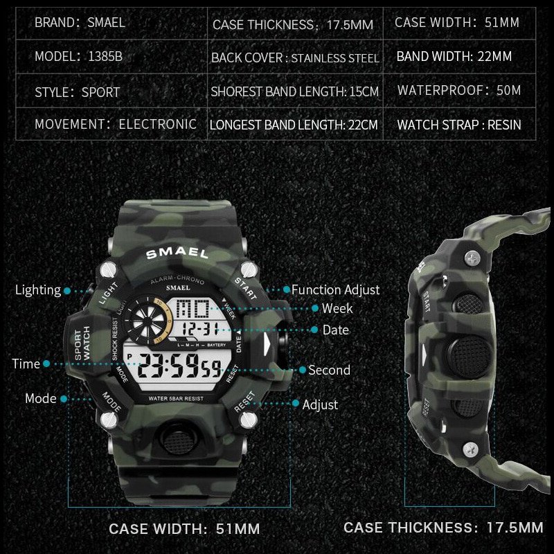 Be the first to review “Watches Men Digital Watch White SMAEL 1385C Sport Watch 50M Waterproof Auto Date relogio masculino Digital Military Watches Mens Sport” Cancel reply